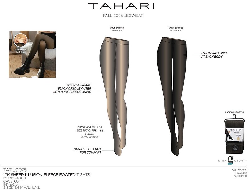 Ladies TAHARI , SHEER ILLUSION Footed Tights . Nude